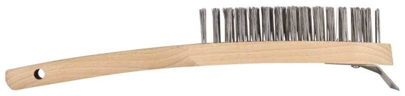 High quality hand brush for deburring, cleaning of welding seams and cleaning of surfaces on stainless steel. The PREMIUM hand brush is suitable for almost any task. This tool allows deburring, cleaning of welding seams and cleaning of surfaces on workpieces made of stainless steel. The high-quality beech wood handle provides maximum comfort for the operator and the stainless steel wire efficiently prevents rusting of the workpiece. Show more Show less